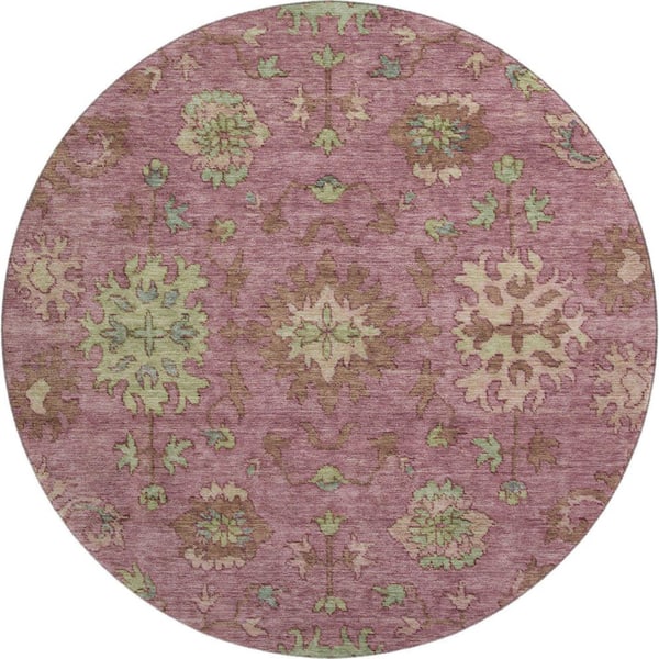 Mayfield Premium Machine Washable Abstract AMF2052 Pink 8 ft. x 8 ft. Round Rug