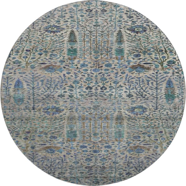 Mayfield Premium Machine Washable Abstract AMF2053 Brown 8 ft. x 8 ft. Round Rug