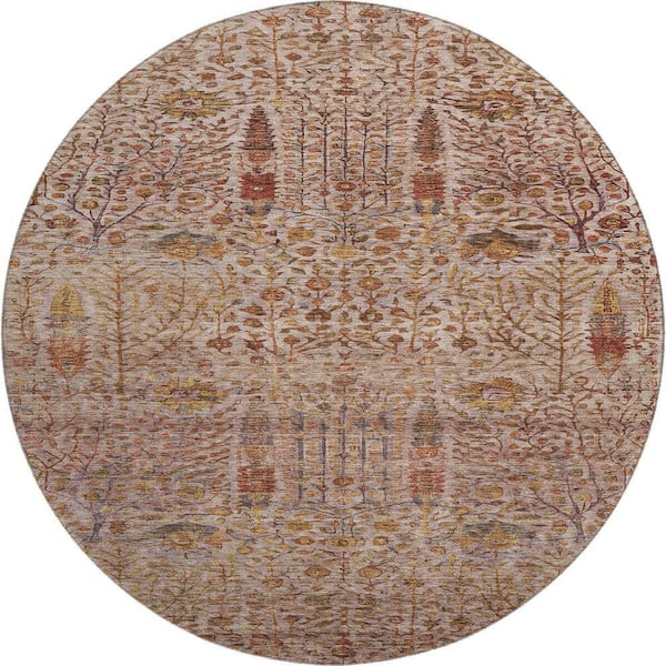 Mayfield Premium Machine Washable Abstract AMF2053 Terracotta 8 ft. x 8 ft. Round Rug