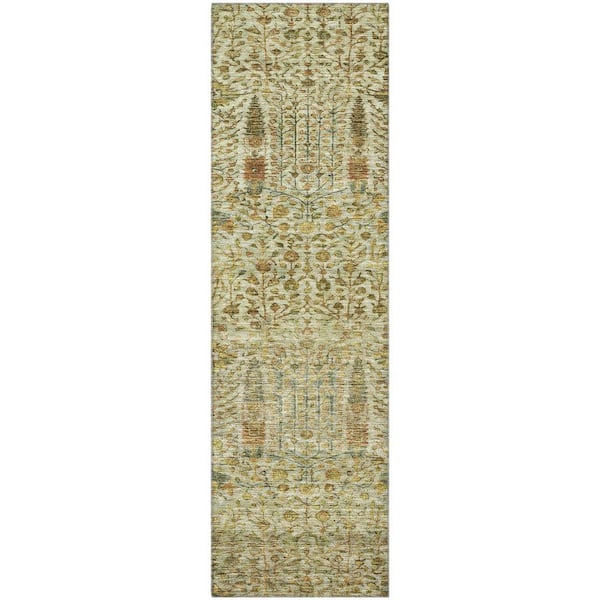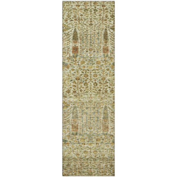 Mayfield Premium Machine Washable Abstract AMF2053 Wheat 2 ft. x 7 ft. Runner Rug