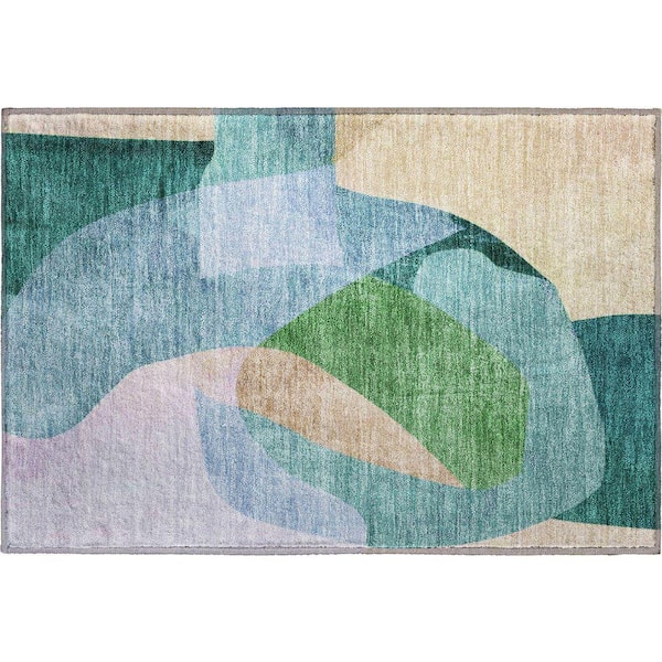Mayfield Premium Machine Washable Abstract AMF2058 Green 2 ft. x 3 ft. Accent Rug