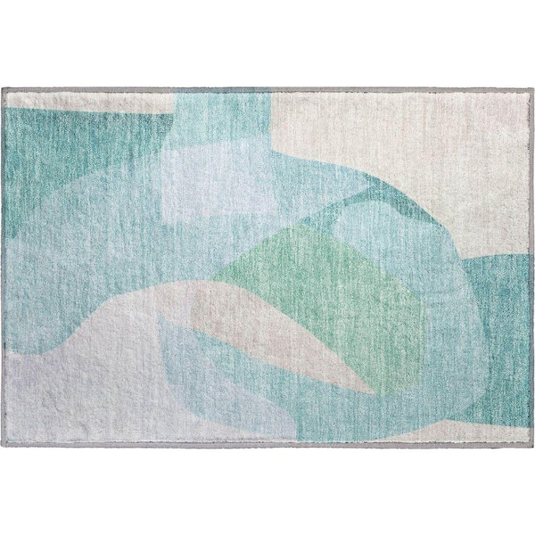 Mayfield Premium Machine Washable Abstract AMF2058 Seafoam 2 ft. x 3 ft. Accent Rug