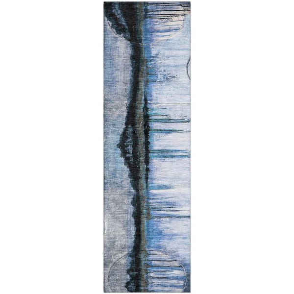 Mayfield Premium Machine Washable Abstract AMF2059 Blue 2 ft. x 7 ft. Runner Rug