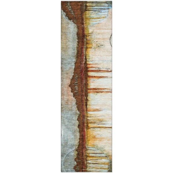 Mayfield Premium Machine Washable Abstract AMF2059 Rust 2 ft. x 7 ft. Runner Rug
