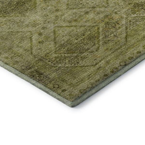 Mayfield Premium Machine Washable Abstract AMF2060 Aloe 2 ft. x 7 ft. Runner Rug