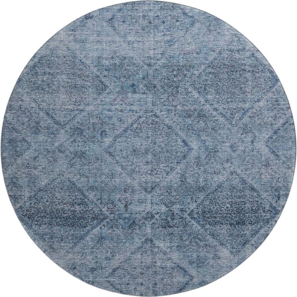 Mayfield Premium Machine Washable Abstract AMF2060 Blue 8 ft. x 8 ft. Round Rug