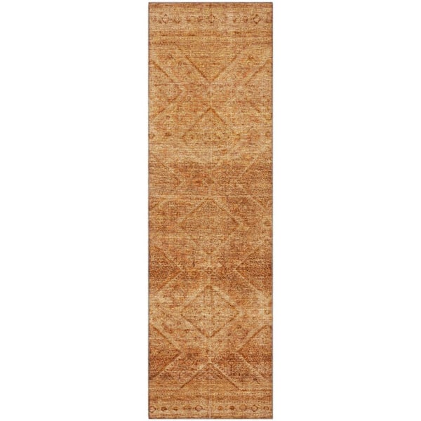 Mayfield Premium Machine Washable Abstract AMF2060 Copper 2 ft. x 7 ft. Runner Rug