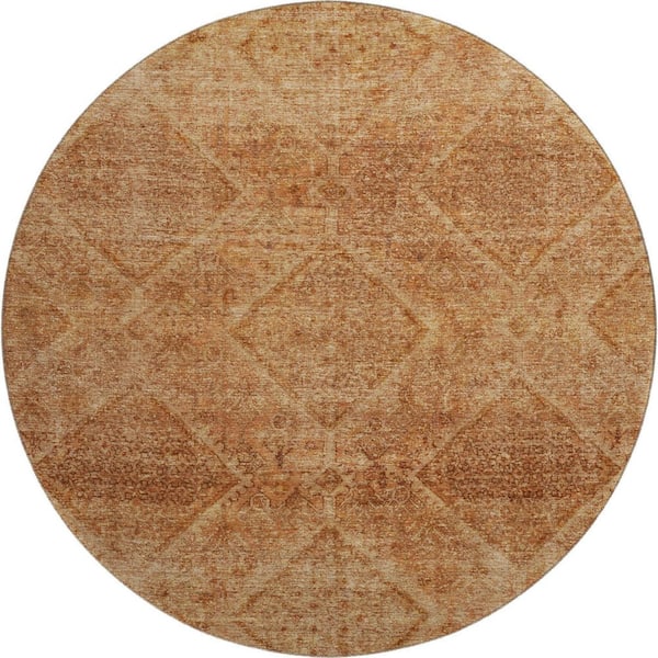 Mayfield Premium Machine Washable Abstract AMF2060 Copper 8 ft. x 8 ft. Round Rug
