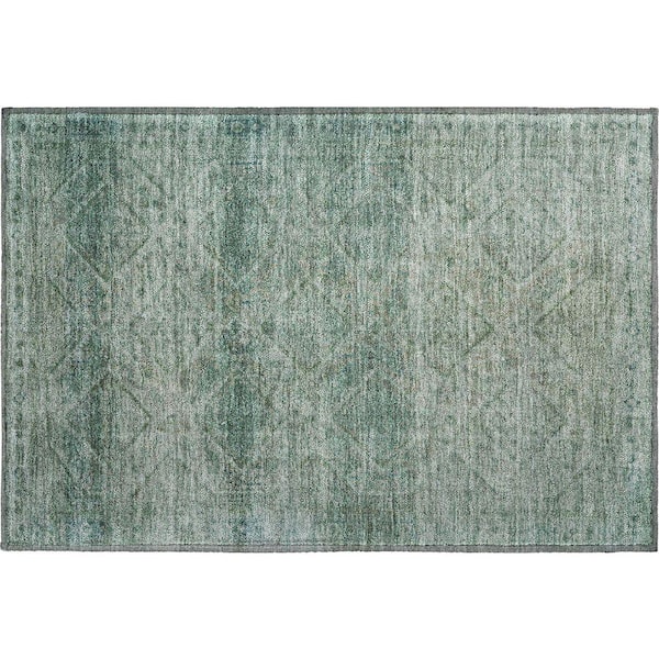 Mayfield Premium Machine Washable Abstract AMF2060 Teal 2 ft. x 3 ft. Accent Rug