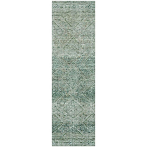 Mayfield Premium Machine Washable Abstract AMF2060 Teal 2 ft. x 7 ft. Runner Rug