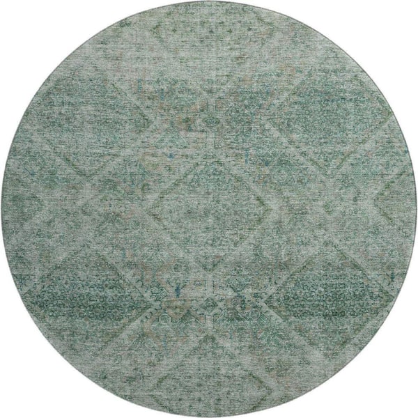 Mayfield Premium Machine Washable Abstract AMF2060 Teal 8 ft. x 8 ft. Round Rug