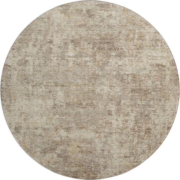 Mayfield Premium Machine Washable Abstract AMF2061 Taupe 8 ft. x 8 ft. Round Rug
