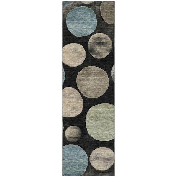 Mayfield Premium Machine Washable Abstract AMF2062 Black 2 ft. x 7 ft. Runner Rug