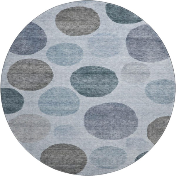 Mayfield Premium Machine Washable Abstract AMF2062 Blue 8 ft. x 8 ft. Round Rug