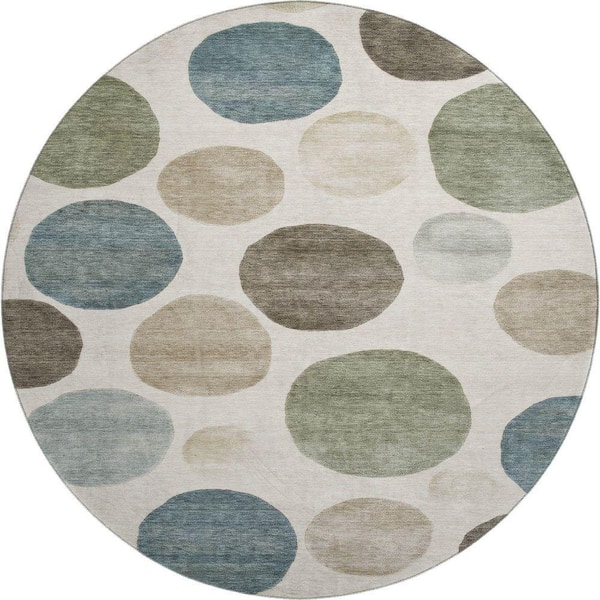 Mayfield Premium Machine Washable Abstract AMF2062 Ivory 8 ft. x 8 ft. Round Rug