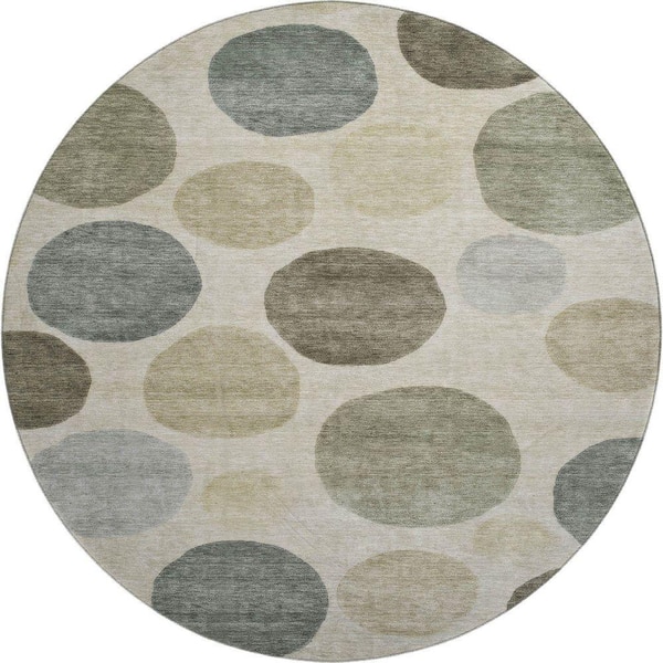 Mayfield Premium Machine Washable Abstract AMF2062 Taupe 8 ft. x 8 ft. Round Rug