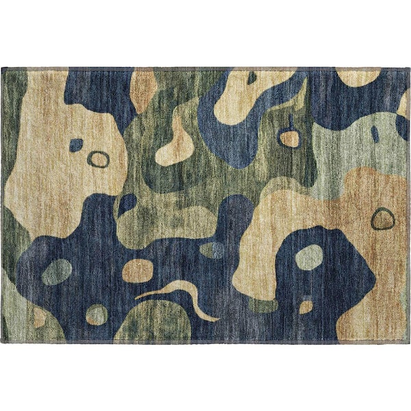 Mayfield Premium Machine Washable Abstract AMF2063 Navy 2 ft. x 3 ft. Accent Rug