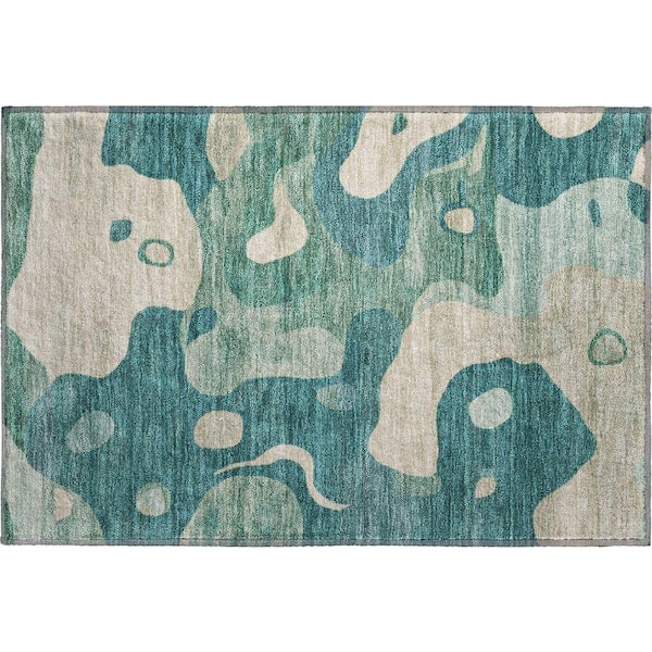 Mayfield Premium Machine Washable Abstract AMF2063 Teal 2 ft. x 3 ft. Accent Rug