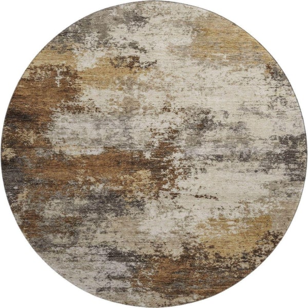 Mayfield Premium Machine Washable Abstract AMF2064 Brown 8 ft. x 8 ft. Round Rug