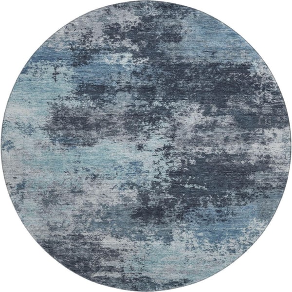 Mayfield Premium Machine Washable Abstract AMF2065 Blue 8 ft. x 8 ft. Round Rug