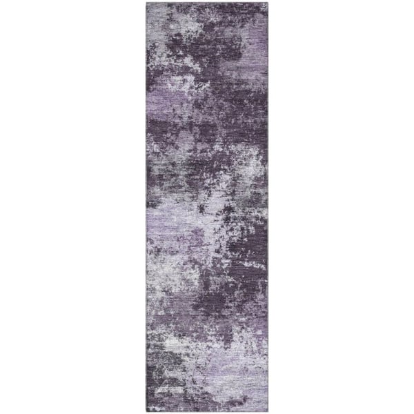 Mayfield Premium Machine Washable Abstract AMF2065 Purple 2 ft. x 7 ft. Runner Rug