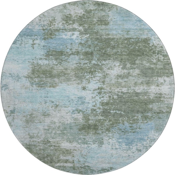 Mayfield Premium Machine Washable Abstract AMF2065 Sage 8 ft. x 8 ft. Round Rug
