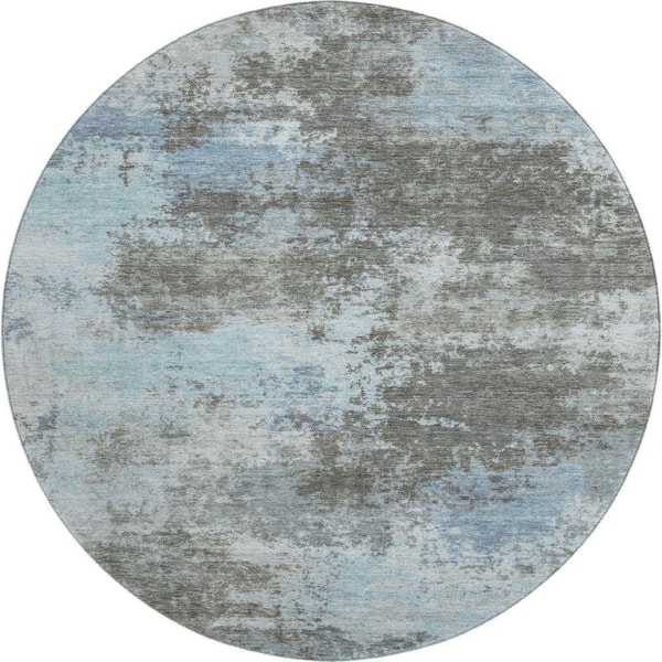 Mayfield Premium Machine Washable Abstract AMF2065 Taupe 8 ft. x 8 ft. Round Rug