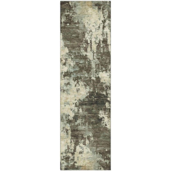 Mayfield Premium Machine Washable Abstract AMF2066 Brown 2 ft. x 7 ft. Runner Rug