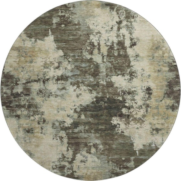 Mayfield Premium Machine Washable Abstract AMF2066 Brown 8 ft. x 8 ft. Round Rug