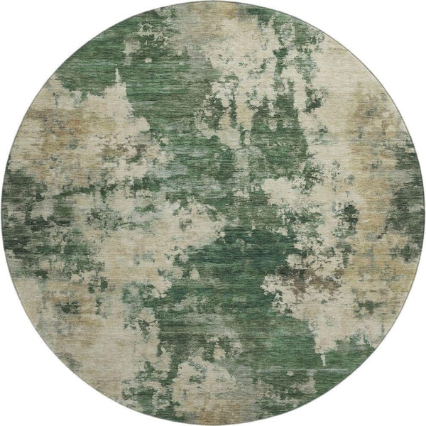 Mayfield Premium Machine Washable Abstract AMF2066 Fern 8 ft. x 8 ft. Round Rug