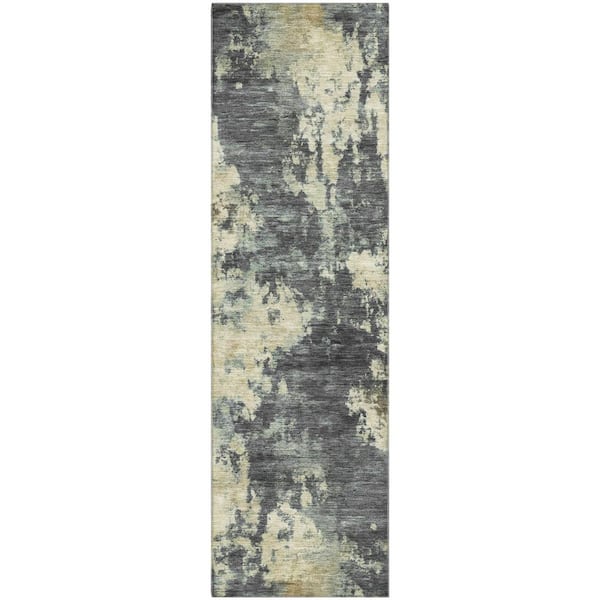 Mayfield Premium Machine Washable Abstract AMF2066 Gray 2 ft. x 7 ft. Runner Rug