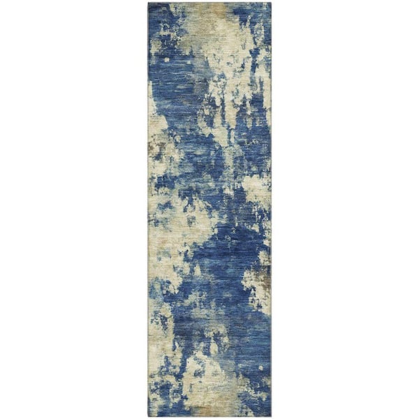 Mayfield Premium Machine Washable Abstract AMF2066 Navy 2 ft. x 7 ft. Runner Rug