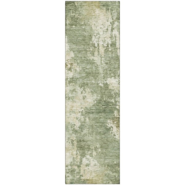 Mayfield Premium Machine Washable Abstract AMF2066 Sage 2 ft. x 7 ft. Runner Rug