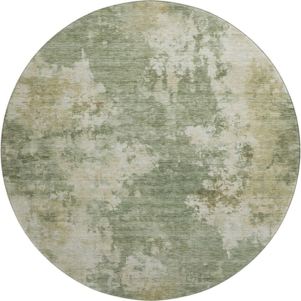 Mayfield Premium Machine Washable Abstract AMF2066 Sage 8 ft. x 8 ft. Round Rug
