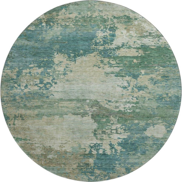 Mayfield Premium Machine Washable Abstract AMF2067 Teal 8 ft. x 8 ft. Round Rug