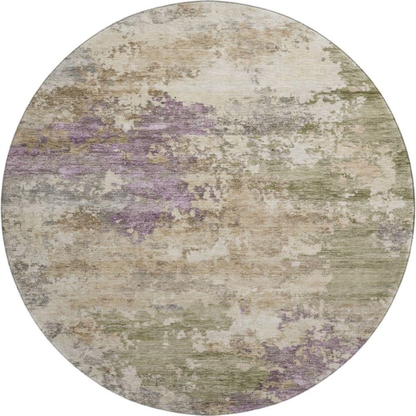 Mayfield Premium Machine Washable Abstract AMF2068 Beige 8 ft. x 8 ft. Round Rug