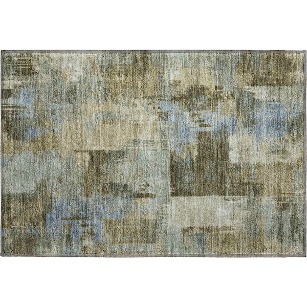 Mayfield Premium Machine Washable Abstract AMF2069 Green 2 ft. x 3 ft. Accent Rug