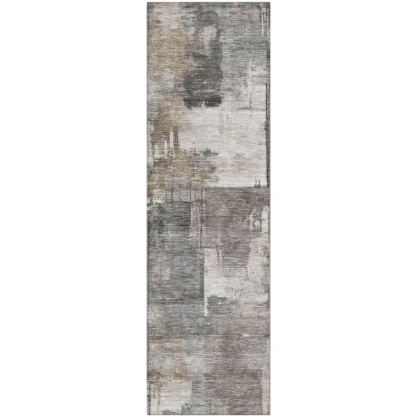 Mayfield Premium Machine Washable Abstract AMF2069 Pewter 2 ft. x 7 ft. Runner Rug