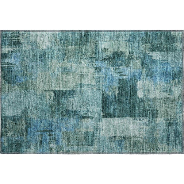 Mayfield Premium Machine Washable Abstract AMF2069 Teal 2 ft. x 3 ft. Accent Rug