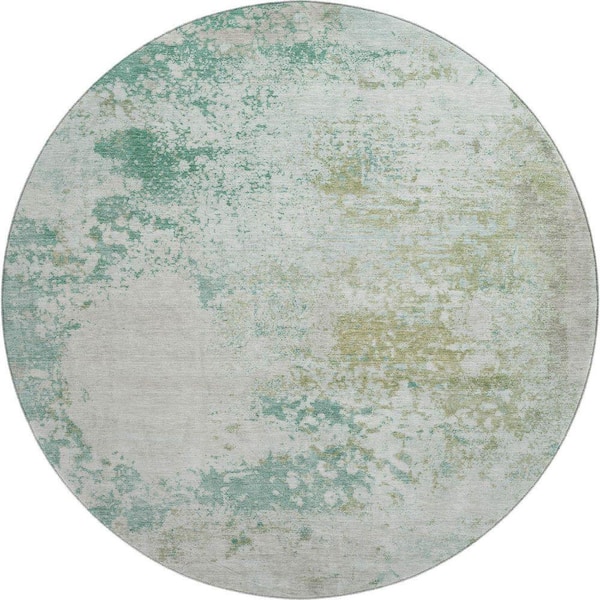 Mayfield Premium Machine Washable Abstract AMF2070 Putty 8 ft. x 8 ft. Round Rug