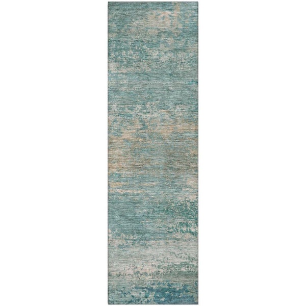 Mayfield Premium Machine Washable Abstract AMF2071 Aqua 2 ft. x 7 ft. Runner Rug