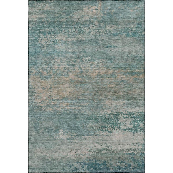 Mayfield Premium Machine Washable Abstract AMF2071 Aqua 9 ft. x 12 ft. Area Rug