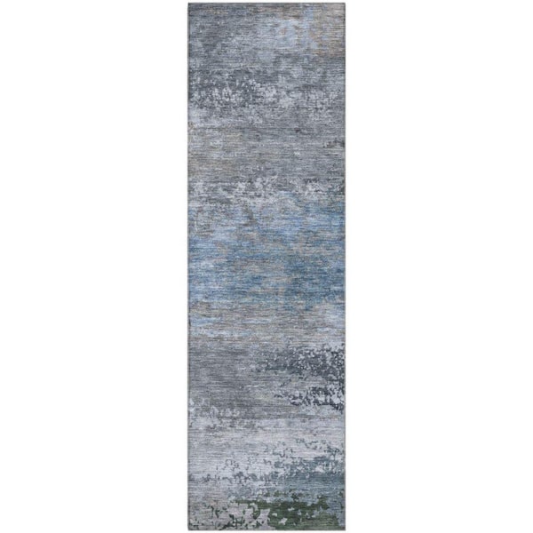 Mayfield Premium Machine Washable Abstract AMF2071 Pewter 2 ft. x 7 ft. Runner Rug