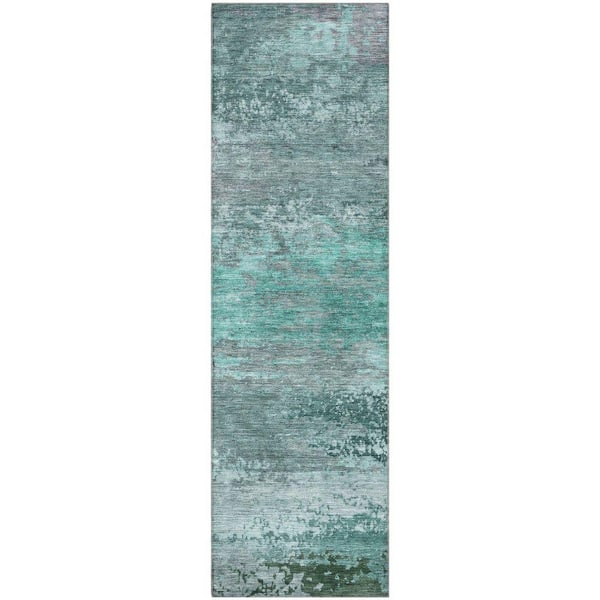 Mayfield Premium Machine Washable Abstract AMF2071 Teal 2 ft. x 7 ft. Runner Rug