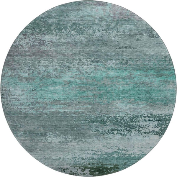 Mayfield Premium Machine Washable Abstract AMF2071 Teal 8 ft. x 8 ft. Round Rug