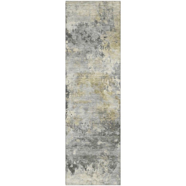 Mayfield Premium Machine Washable Abstract AMF2073 Pewter 2 ft. x 7 ft. Runner Rug