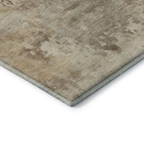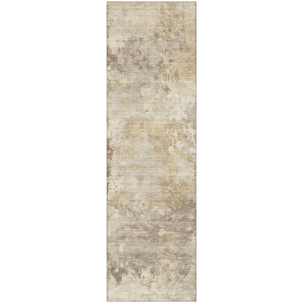 Mayfield Premium Machine Washable Abstract AMF2073 Tan 2 ft. x 7 ft. Runner Rug