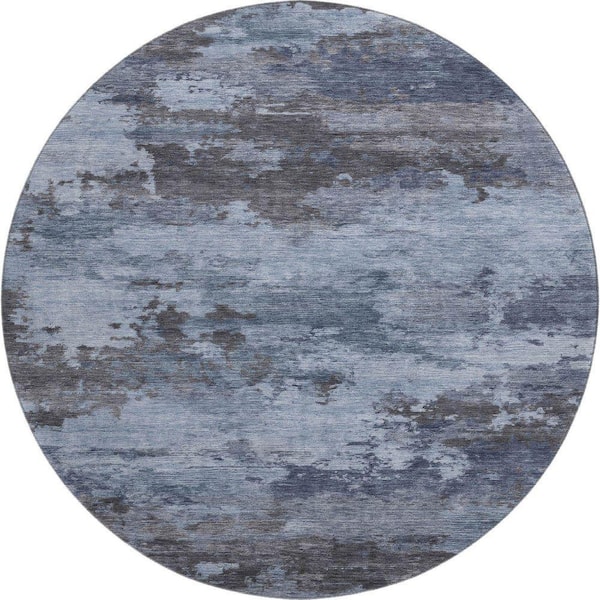 Mayfield Premium Machine Washable Abstract AMF2075 Blue 8 ft. x 8 ft. Round Rug