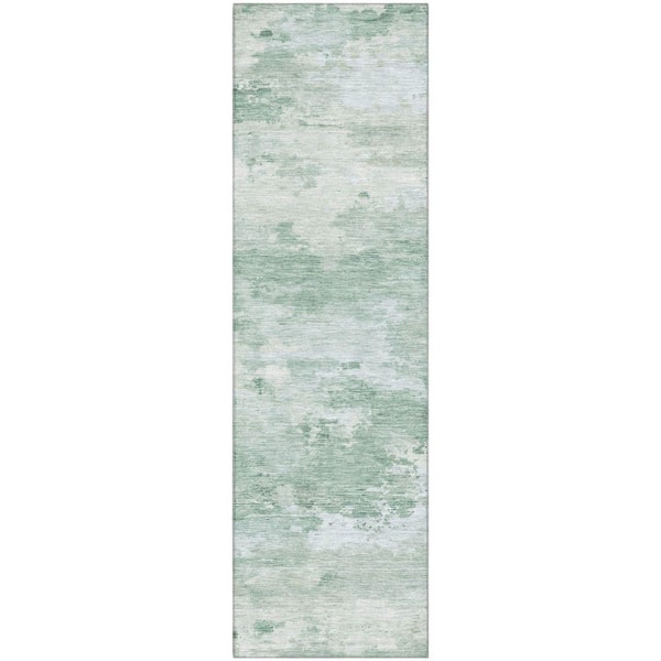 Mayfield Premium Machine Washable Abstract AMF2075 Mint 2 ft. x 7 ft. Runner Rug
