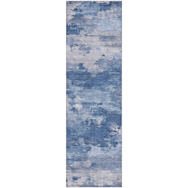 Mayfield Premium Machine Washable Abstract AMF2075 Navy 2 ft. x 7 ft. Runner Rug